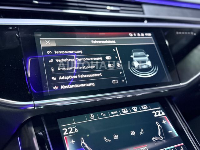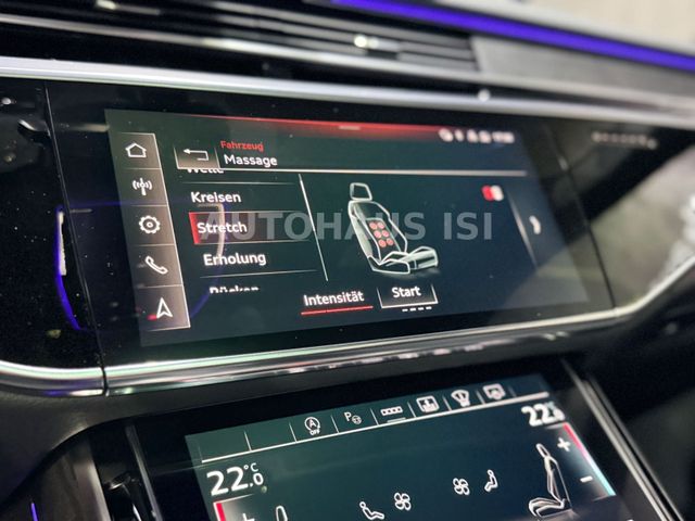 Ambiente-Beleuchtung (Multicolor-LED), Assistenz-Paket Parken mit Remote Parklenkassistent, Ausstattungs-Paket: Chrom-Exterieurpaket, Bedienelemente Glasoptik, inkl. erweiterter Aluminium-Optik, Bremssättel Schwarz lackiert, Dachhimmel Stoff, schwarz, Durchladeeinrichtung (Mittelarmlehne hinten), Dynamiklenkung - Allradlenkung, Fondsitz-Paket Einzelsitze (2 Einzelsitze), Frontscheibe Klimakomfort / Akustikglas, heizbar, Gepäckraum-Paket, Head-up-Display, Innenausstattung: Dekoreinlagen unten Aluminium gebürstet, Ionisator zur Luftreinigung (Air-Quality-System), Klapptische im Fond, Klimakomfort / Akustik - Verglasung, Kombiinstrument digital (virtual cockpit plus), Leder-Paket, LM-Felgen 9x19 (15-Speichen), Matrix-LED Leseleuchten im Fond, Metallic-Lackierung, Panoramadach elektrisch - vorn und hinten, Reifendruck-Kontrollsystem, Ruhesitz hinten rechts, Servoschliessung für Türen, Sound-System Bang & Olufsen, Standheizung, Steckdose 230V, Telefonie im Fond mit Wireless Charging (Audi Phone Box), TV-Empfang (Tuner) digital und Radioempfang digital, USB-Ladeanschlüsse (2-fach, Typ C) für Fondpassagiere, Verglasung hinten abgedunkelt (Privacyverglasung),